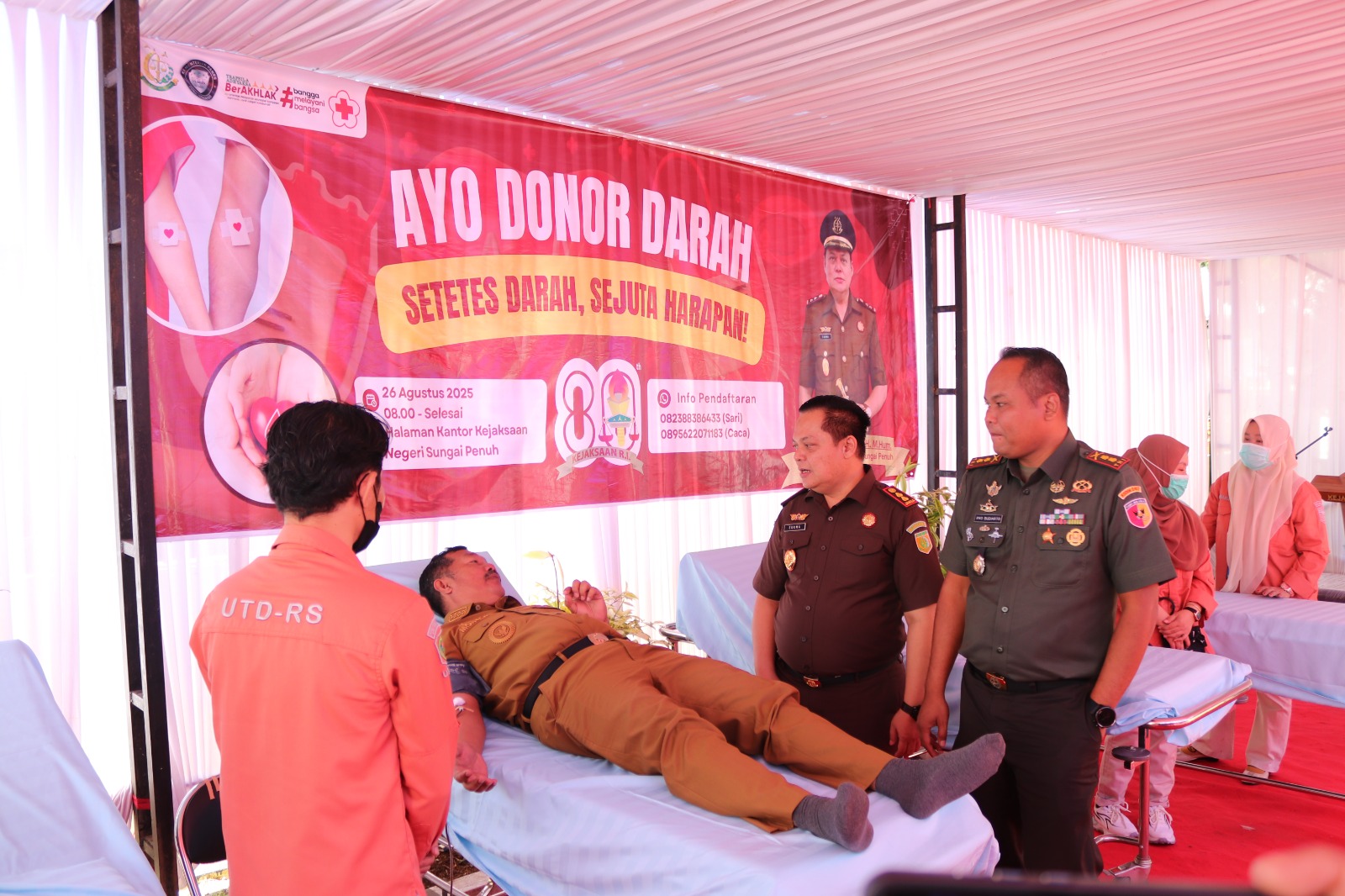 Kejaksaan Negeri Sungai Penuh menyelenggarakan kegiatan Donor Darah dalam rangka memperingati Hari Lahir Kejaksaan Republik Indonesia pada Selasa, 26 Agustus 2025 bertempat di Halaman Kantor Kejaksaan Negeri Sungai Penuh. Kegiatan ini dihadiri oleh Forkopimda Kota Sungai Penuh, Kabupaten Kerinci, serta sejumlah instansi vertikal dan BUMN/BUMD.