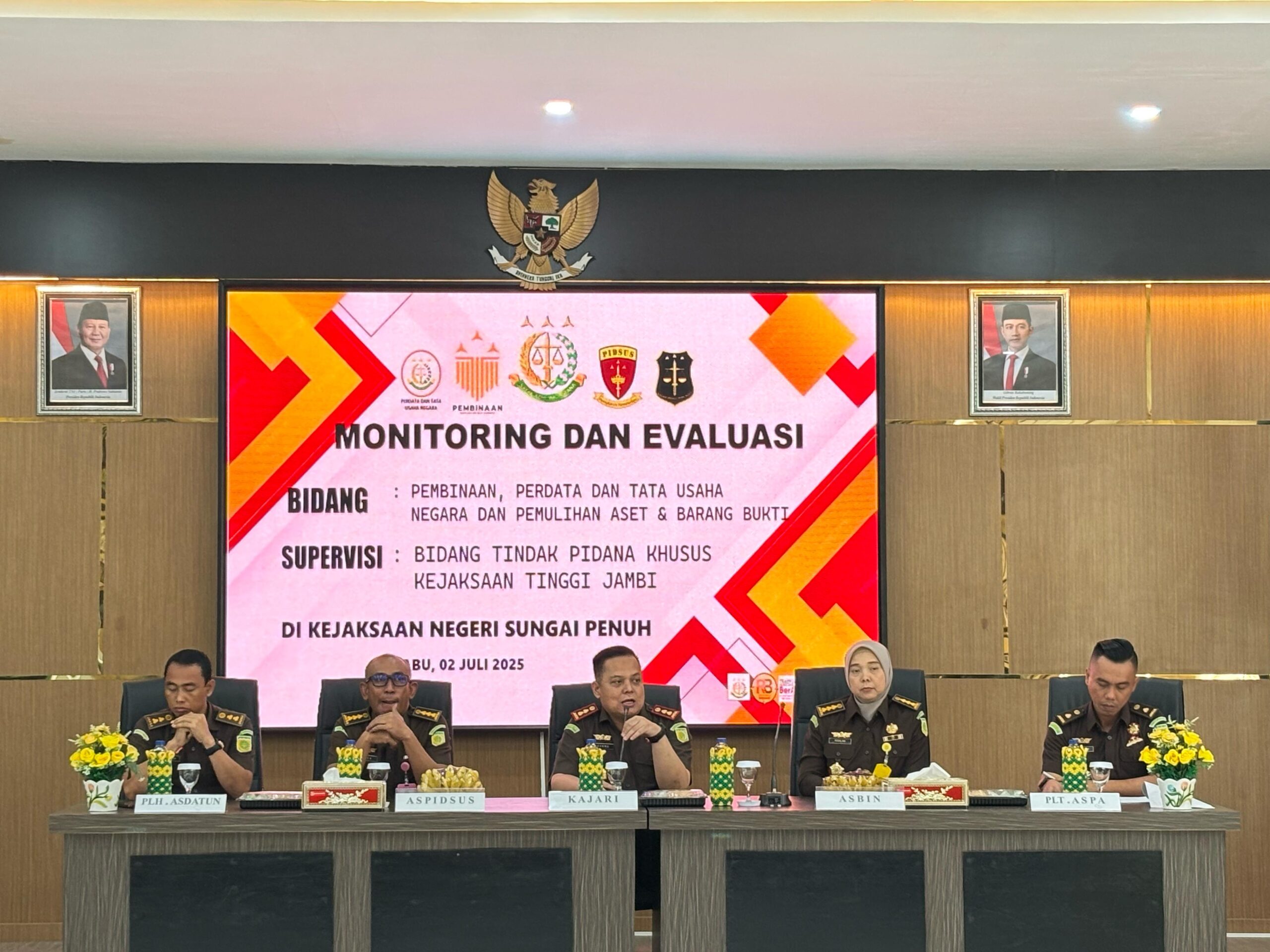 Sungai Penuh, 2 Juli 2025 – Kejaksaan Negeri Sungai Penuh menerima kunjungan dari Tim Kejaksaan Tinggi Jambi dalam rangka kegiatan Monitoring dan Evaluasi (Monev) pada Bidang Perdata dan Tata Usaha Negara (Datun) dan Bidang Pembinaan, serta Supervisi terhadap Bidang Tindak Pidana Khusus (Pidsus).