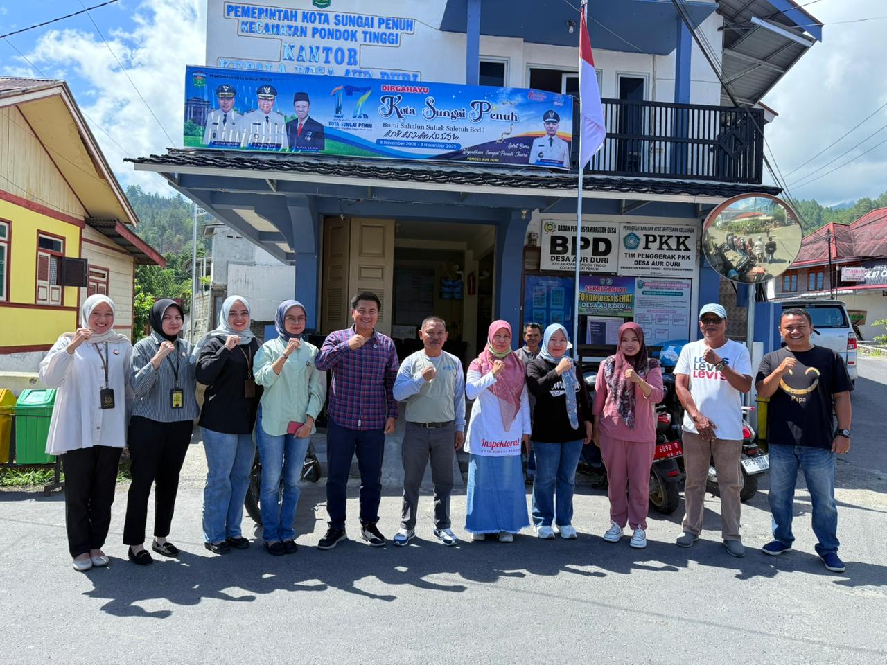 Pada hari Kamis tanggal 05 Desember 2025 sekira pukul 10.30 WIB s/d selesai bertempat di Desa Aur Duri Kecamatan Pondok Tinggi Kota Sungai Penuh, Plt. Kepala Seksi Perdata dan Tata Usaha Negara Yupran Susanto, S.H. M.H, Kasubsi Pertimbangan Hukum Siti Nanda Harliani, S. H., Kasubsi Perdata dan Tata Usaha Negara Annisya T R, S. H. beserta Staff Datun bersama Tim Inspektorat Kota Sungai Penuh melakukan monitoring dan kunjungan lapangan kegiatan fisik di Desa Aur Duri