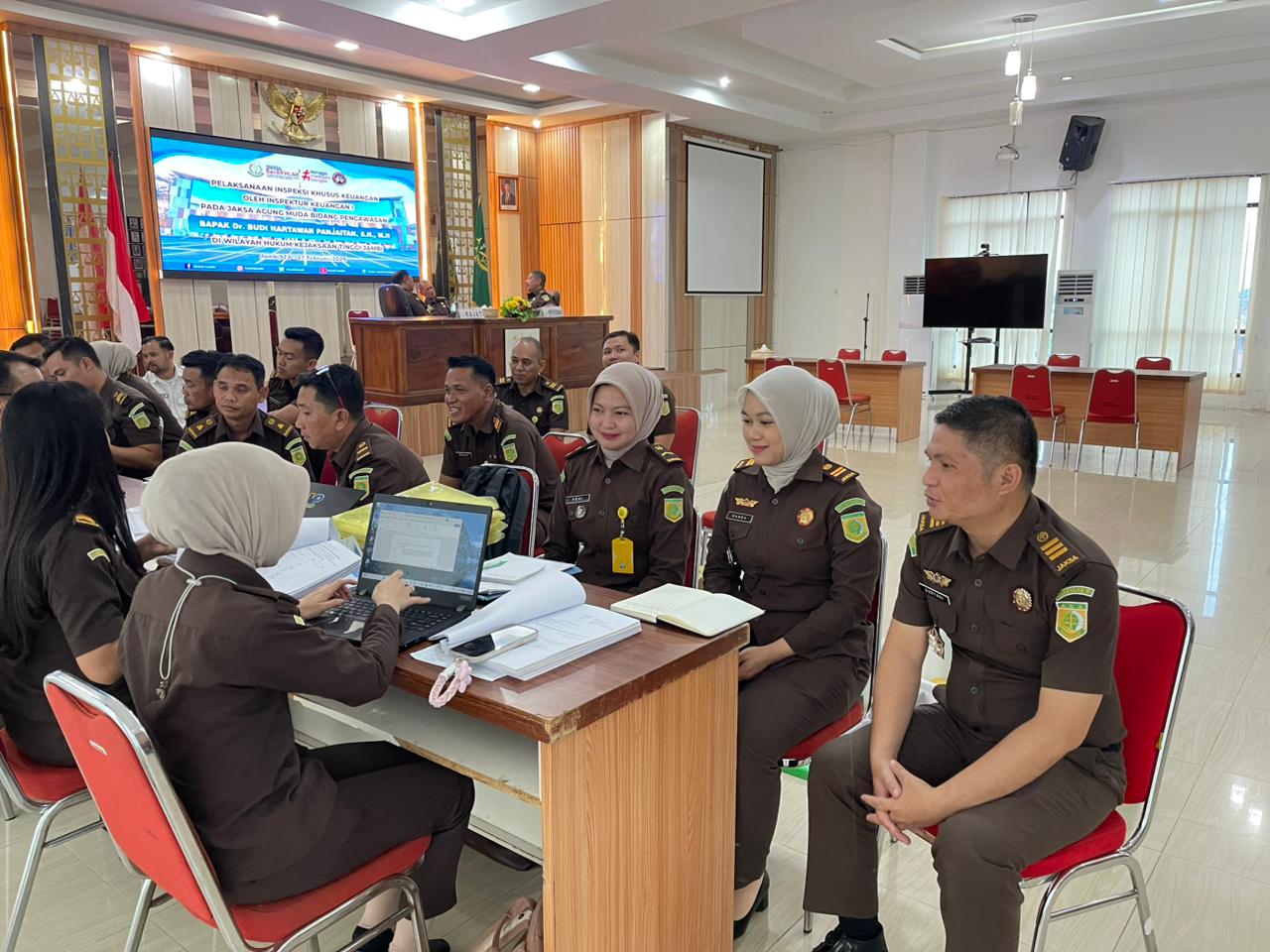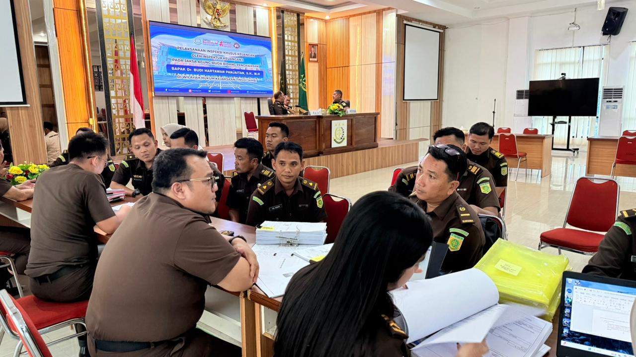 Pada hari Senin, 23 Februari 2026, telah dilaksanakan Inspeksi Khusus Keuangan oleh Inspektur Keuangan I pada Jaksa Agung Muda Bidang Pengawasan yang bertempat di Aula Kejaksaan Tinggi Jambi. Kegiatan ini diikuti oleh jajaran Kejaksaan Negeri Sungai Penuh, para Kepala Seksi (Kasi), serta masing-masing staf sebagai bagian dari upaya penguatan akuntabilitas, transparansi, dan tata kelola keuangan di lingkungan Kejaksaan.