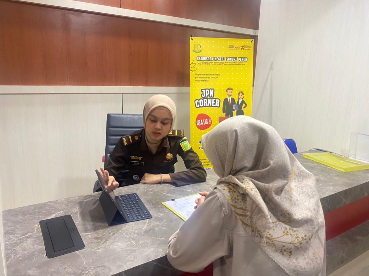 Pada hari Rabu tanggal 28 Januari 2026 sekira pukul 11.00 Wib s/d selesai bertempat di Mall Pelayanan Publik Kota Sungai Penuh, Kasubsi Perdata dan TUN Annisya T.R., S.H., menerima kedatangan Masyarakat dalam rangka Konsultasi terkait keperdataan, yang merupakan salah Tugas Pokok dan Fungsi bidang Perdata dan Tata Usaha Negara yaitu Pelayanan Hukum