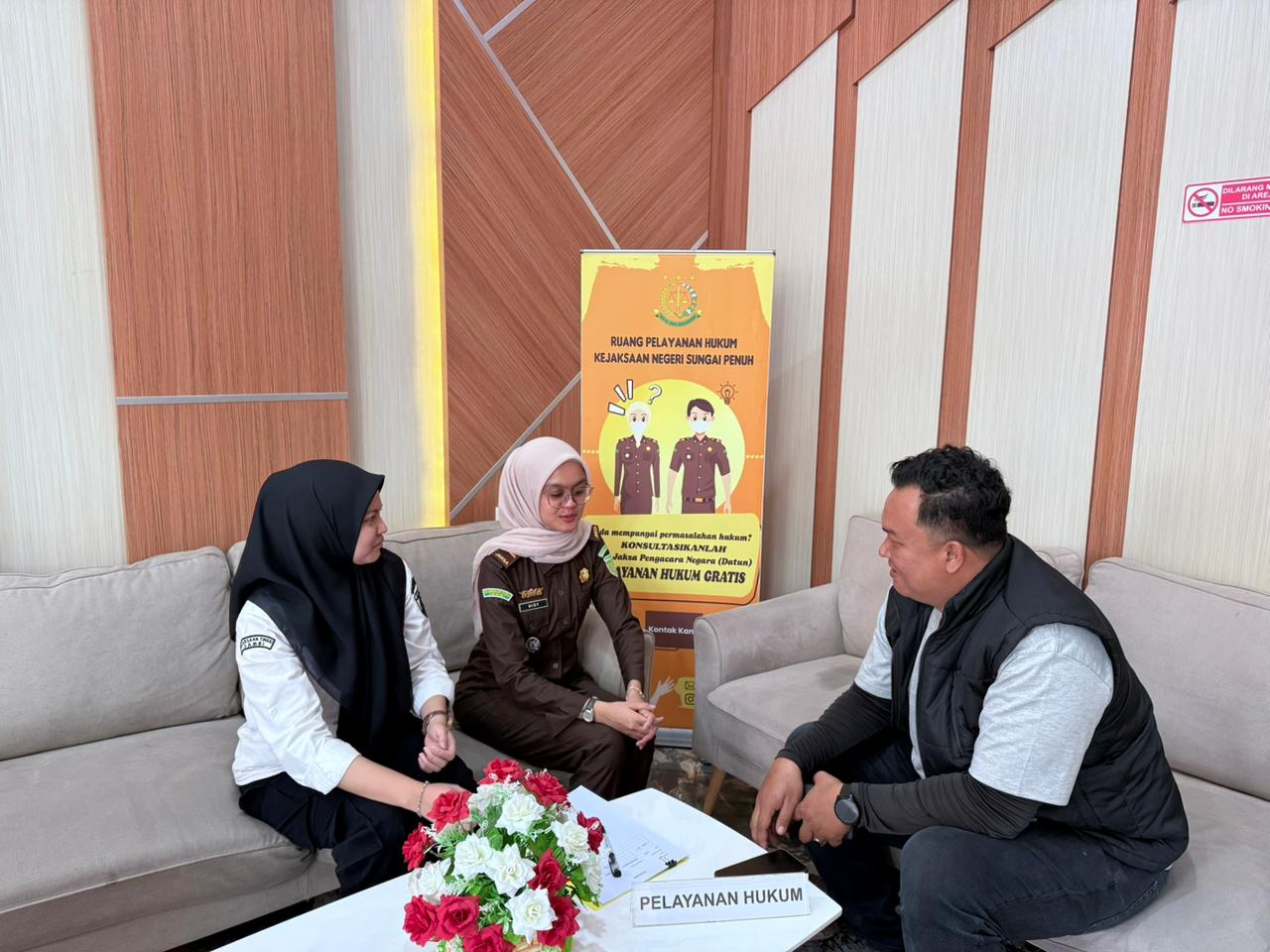 Pada hari Rabu tanggal 07 Januari 2026 sekira pukul 15.00 Wib s/d selesai bertempat di Ruang Pelayanan Publik pada Kejaksaan Negeri Sungai Penuh, Kasubsi Perdata dan TUN Annisya T.R., S.H., dan Staf menerima kedatangan Masyarakat dalam rangka Konsultasi terkait keperdataan, yang merupakan salah Tugas Pokok dan Fungsi bidang Perdata dan Tata Usaha Negara yaitu Pelayanan Hukum