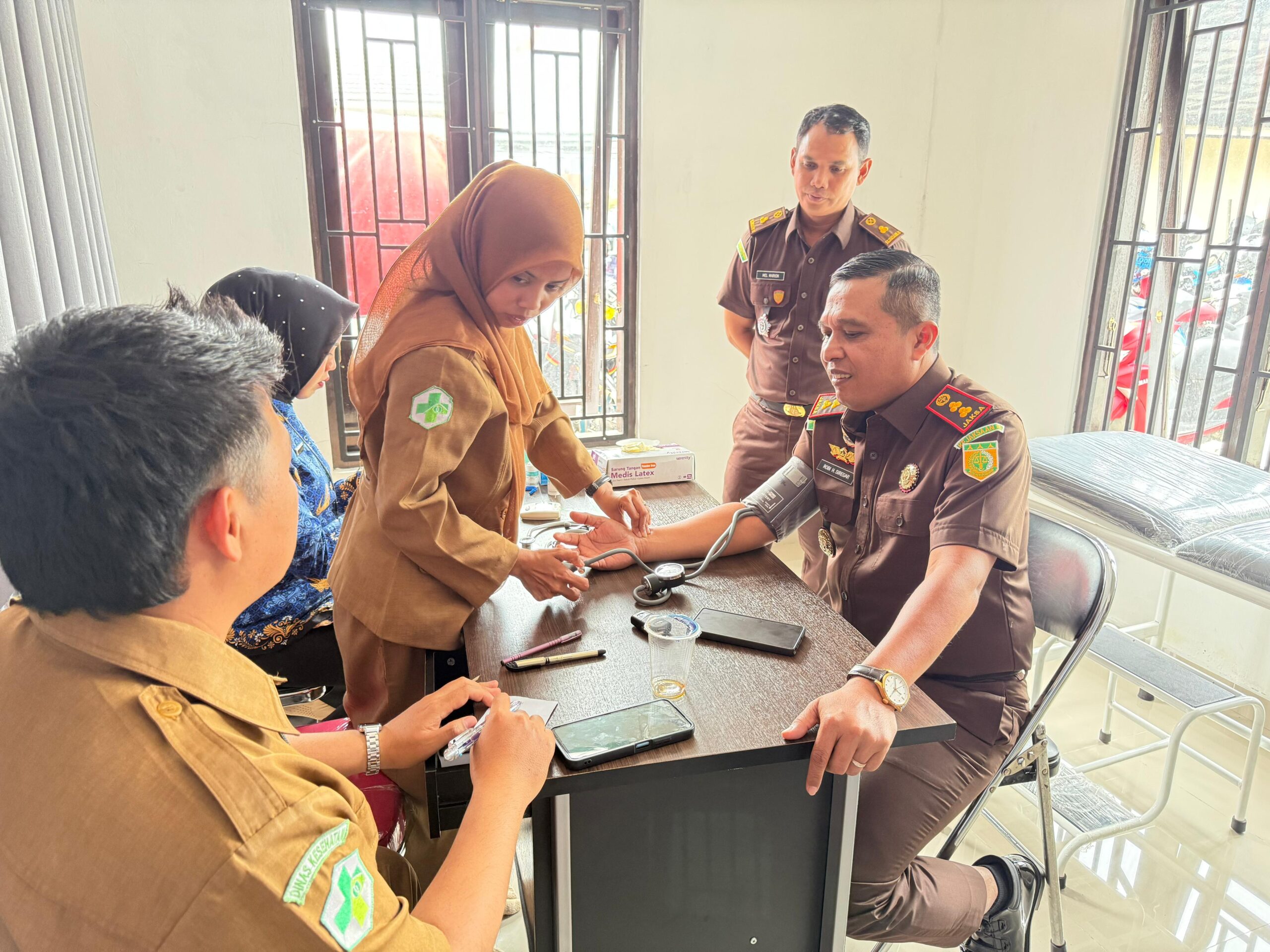 Kegiatan ini berlangsung di Klinik Adhyaksa Kejari Sungai Penuh, dengan bekerja sama bersama Puskesmas Kota Sungai Penuh. Langkah kecil ini jadi bagian penting untuk memastikan kondisi kesehatan pegawai tetap terpantau dan prima dalam menjalankan tugas sehari-hari.