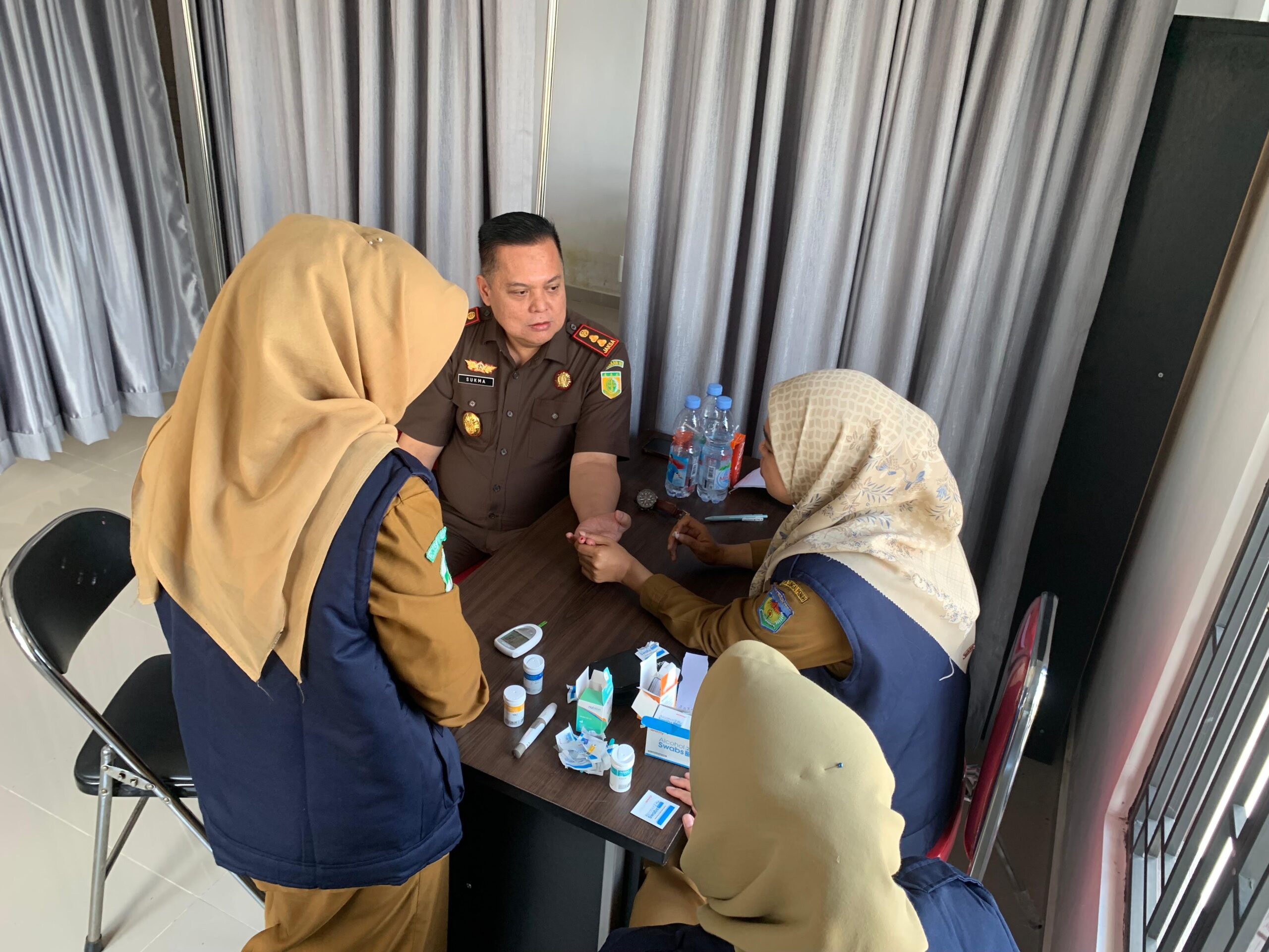 Dalam rangka menjaga kesehatan dan meningkatkan kesadaran akan pentingnya pola hidup sehat, Kejaksaan Negeri Sungai Penuh melaksanakan kegiatan Pemeriksaan Rutin Kesehatan di Klinik Adhyaksa pada hari Senin tanggal 30 Juni 2025. Pemeriksaan meliputi pengecekan tensi, gula darah, kolesterol dan asam urat secara gratis. Selain itu, para pegawai juga mendapatkan kesempatan untuk konsultasi terkait permasalahankesehatan langsung bersama tim medis dari UPTD Puskesmas Rawang, Kota Sungai Penuh.