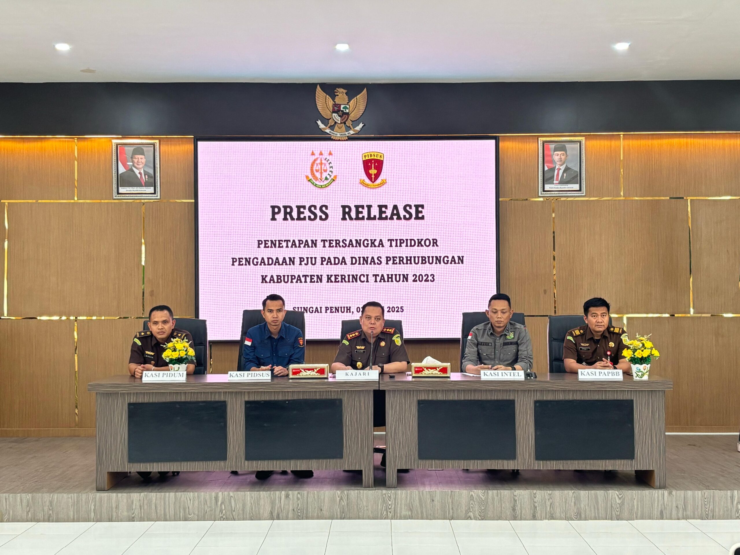 Kejaksaan Negeri Sungai Penuh menetapkan tersangka dalam perkara Tindak Pidana Korupsi (Tipikor) terkait kegiatan Pengadaan Komponen Penerangan Jalan Umum (PJU) pada Dinas Perhubungan Kabupaten Kerinci Tahun Anggaran 2023.