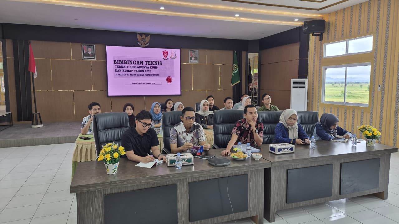 Kejaksaan Negeri Sungai Penuh mengikuti Program Bimbingan Teknis terkait berlakunya KUHP dan KUHAP Baru Tahun 2026 yang diselenggarakan pada Jumat 9 Januari 2026 sebagai bentuk penyelarasan pemahaman penguatan kapasitas serta penyeragaman paradigma tugas dan fungsi Jaksa dalam rangka mendukung optimalisasi pelaksanaan penegakan hukum pidana seiring diberlakukannya regulasi baru sehingga diharapkan seluruh jajaran Jaksa dapat memahami dan mengimplementasikan ketentuan KUHP dan KUHAP Baru secara profesional akuntabel dan berintegritas.