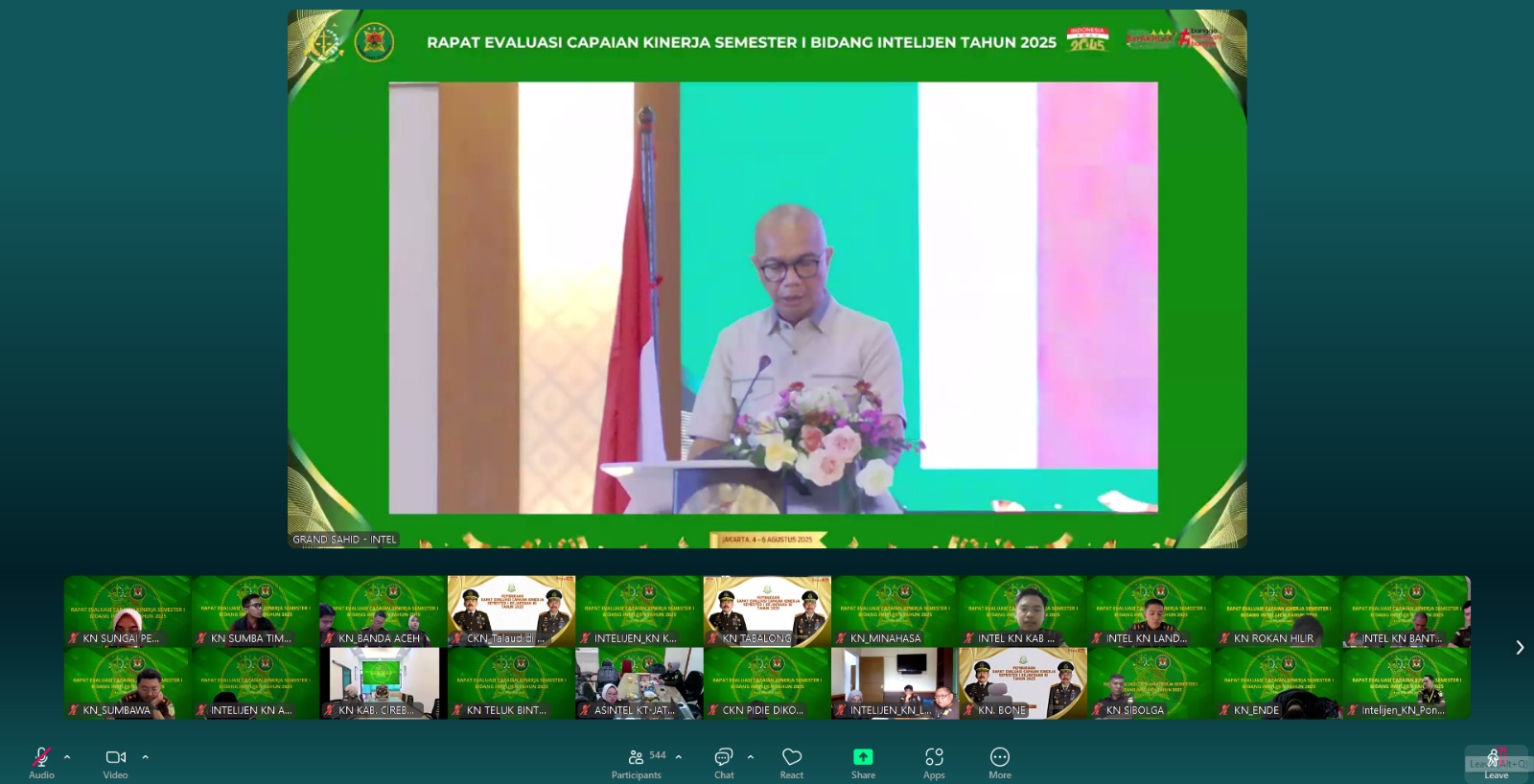 Kejaksaan Republik Indonesia menyelenggarakan Rapat Evaluasi Kinerja Semester I Tahun 2025 secara daring melalui platform Zoom Meeting.
