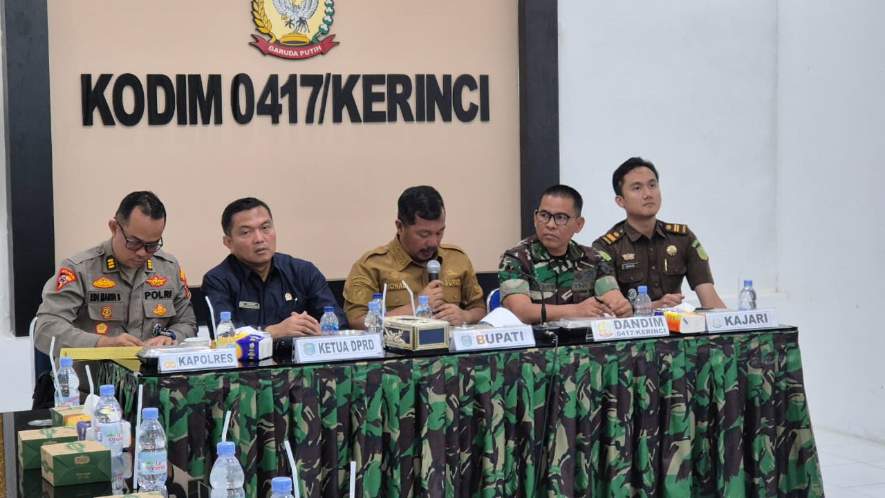 Kejaksaan Negeri Sungai Penuh melalui Bidang Intelijen turut menghadiri Rapat Koordinasi dalam rangka persiapan pengamanan Natal dan Tahun Baru 2026 serta penanganan isu-isu aktual di Kabupaten Kerinci yang dilaksanakan pada Senin, 15 Desember 2025 pukul 14.30 WIB bertempat di Aula Kodim 0417/Kerinci. Rapat dipimpin langsung oleh Bupati Kerinci dan dihadiri unsur Forkopimda serta OPD terkait, dengan Kasubsi I Intelijen Kejari Sungai Penuh bertindak sebagai pemateri. Kegiatan ini membahas berbagai isu strategis, antara lain potensi konflik sosial, kesiapan pengamanan Nataru, kesiapan sektor pariwisata dan kesehatan, antisipasi bencana alam, serta stabilitas bahan pokok, sebagai wujud sinergi lintas sektor dalam menjaga kondusivitas kamtibmas dan pelayanan kepada masyarakat menjelang akhir tahun.